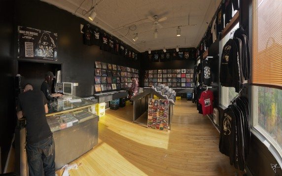 Obviously, War On Music’s Charley Justice works a lot faster than I do. When his original retail location at 38-44 Albert Street in downtown Winnipeg went up in flames back on April 19th, he ramped up his usual whirlwind of internalised kinetic energy and went to work at opening another location as quickly as possible. Within two months, he had a new place at 91 Albert and was back to selling records to Winnnipeg metalheads and punk rockers by the time I got in touch with him for an interview on the topic at hand in mid-June.