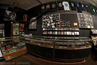 Well, it took us a few weeks! Forty-two days, to be exact, between the fire and the new shop launch. But it didn’t feel quick considering the amount of work in between! Basically, we took about a week to decide whether we should open a new shop or just go entirely webstore/wholesale. After making the decision to open another shop, we simply got to the grind, knocked down the pins, you know. Found a location, scoured hundreds of pages of catalogs and hand-selected our new inventory, did a few dozen label trades… A ton of our distributors were infinintely helpful & accommodating, sending us huge boxes on terms, trade, or with greatly appreciated “sympathy” discounts. Massive thanks to Relapse, Century Media, Revelation, Hells Headbangers, Ebullition, all the labels we trade with. You guys made it happen for us.