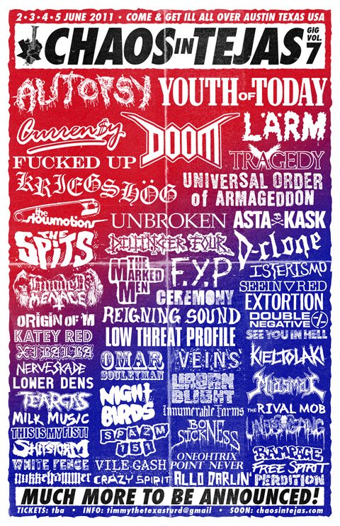 The ninth annual Chaos in Tejas fest begins in Austin, TX tonight. I have barely recovered from last weekend and Maryland Deathfest, but ever since attending CIT for the first time last year, I made the promise to myself that sleep, work and all that other crap can be worried about later when there’s more live extremity to be experienced.