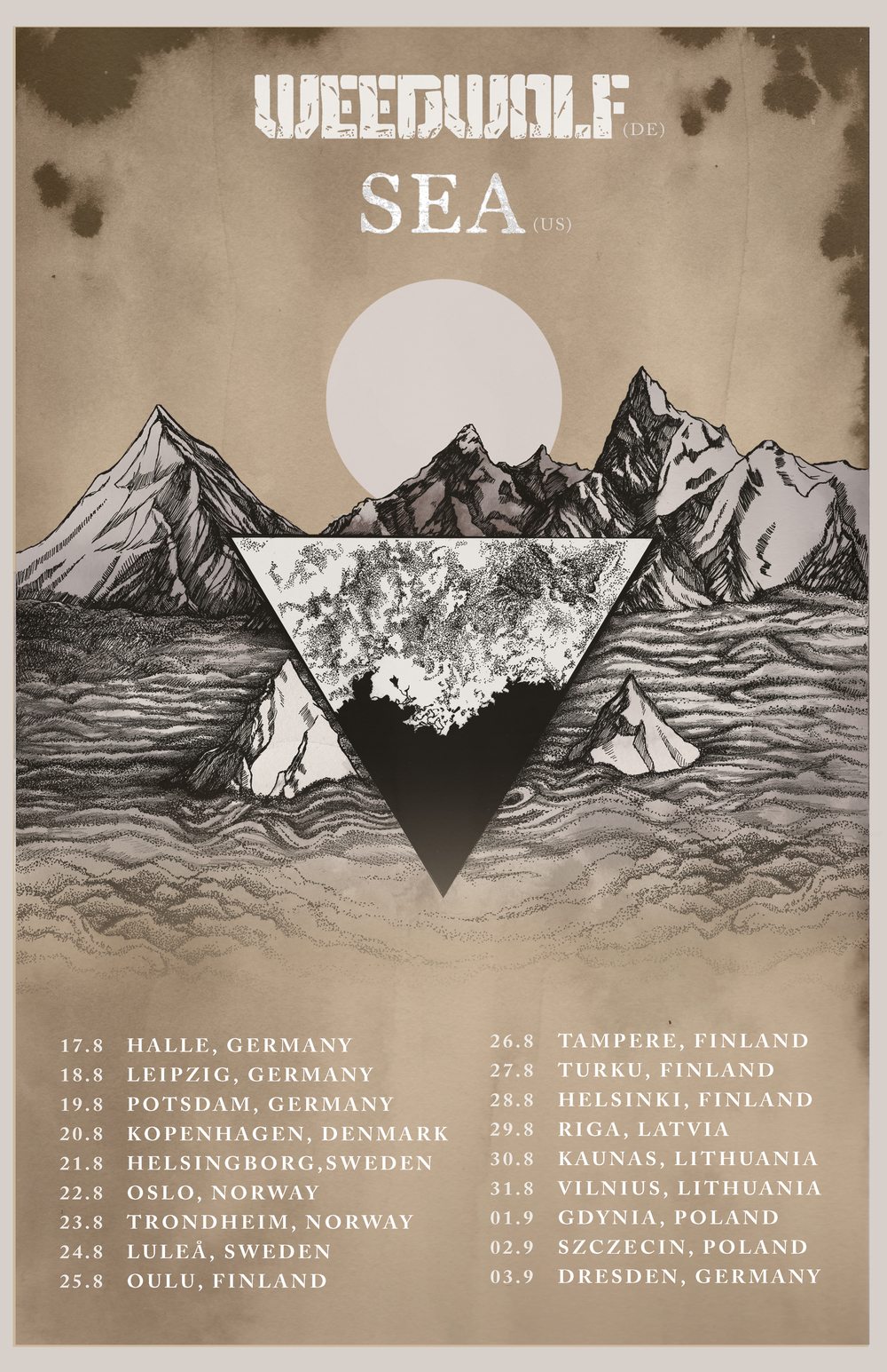 Before they surge through Europe, give SEA’s demo a spin as well, and check out all the dates on the amazing tour poster (drawn and designed by SEA’s Liz Doom) below.