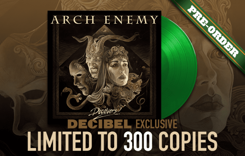 The secret is out: Arch Enemy unveils Deceivers, their 11th studio album, out this summer via Century Media. The symphonic Swedish quintet returns to smash you to shards once again with the twin axe-attack of legendary guitarists Michael Amott and Jeff Loomis. This heavy-weight 180-gram record features a tight 11 tracks of mirror-shattering melodic death metal, featuring Canadian vocalist and frontwoman Alissa White-Gluz at the helm.