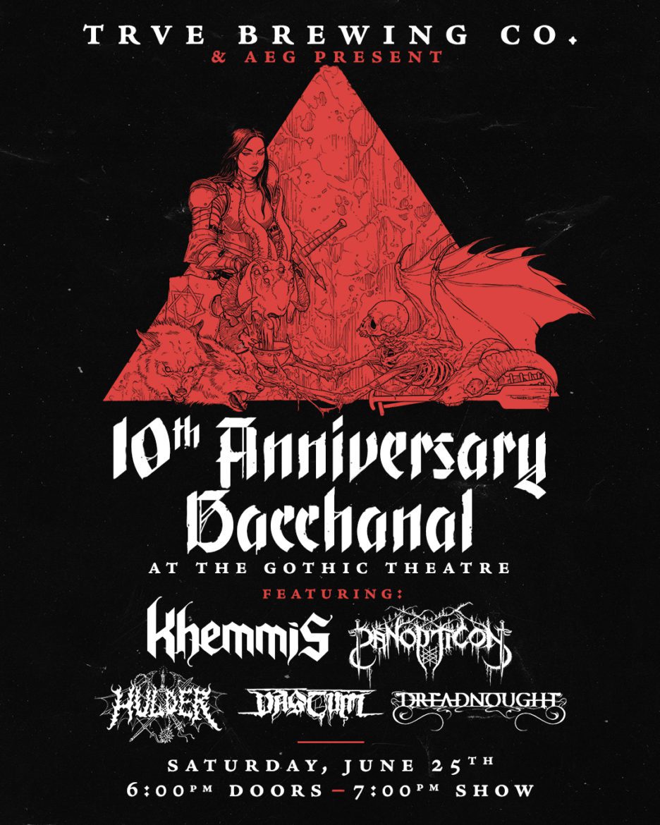 TRVE Brewing has been a staple in the South Broadway neighborhood of Denver, Colorado for a decade now. It’s a landmark moment for the DIY heshers, Nick Nunns and Zach Coleman, who initially came together to build an idea for their shared love of beer styles and heavy music. Years have passed and beers have flowed; as a result, the two-man operation grew exponentially to include new partners, a full staff, and a growing community. To celebrate the momentous event, TRVE is throwing a 10th Anniversary Bacchanal on June 25th. It is also their first anniversary party in a few years, and they are expecting it to be a blowout.