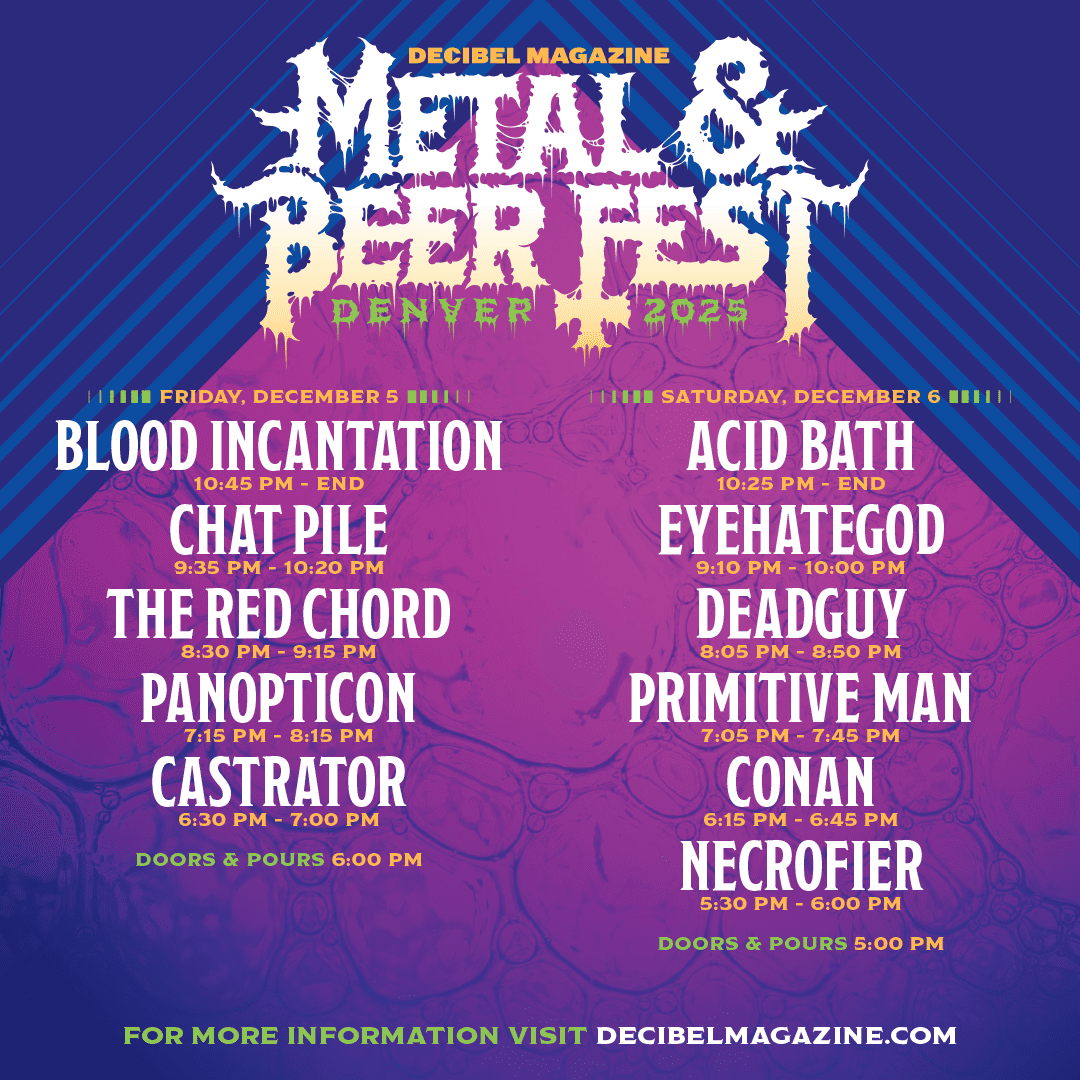 Decibel Magazine Metal & Beer Fest: Denver is tapping the Fillmore Auditorium as this year’s home of the world’s loudest, heaviest, most extreme craft beer festival on Friday and Saturday, December 5-6, 2025.